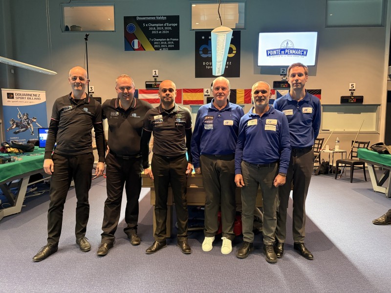 Intermarché s’incline 2-4 face à Douai, le président douaisien ne trouve pas ses marques et se laisse déborder par Eric Pichenaud (250-242), Léo Dubernet résiste face à Alain Remond (109-120) mais Ludovic Hebrard ne peut rien face à Patrick Niessen (13-200 en 5). Malgré l’heure tardive, les supporters de Douarnenez sont présents, tout dévoués à leur équipe qui s’impose face à Douai-Carvin 5-1 : match nul au 71/2 mais Gregory Le Deventec éblouissant (120 en 6, meilleure série 53) et Raymund Swertz impressionnant (227 sur le point d’entrée et ne sort pas). L’équipe locale s’impose également face à Intermarché 6-0 : Swertz encore en 3 même si le temps d’une reprise Eric a dominé, 200 en 7 pour Louis Edelin et en 14 reprises pour Grégory.
