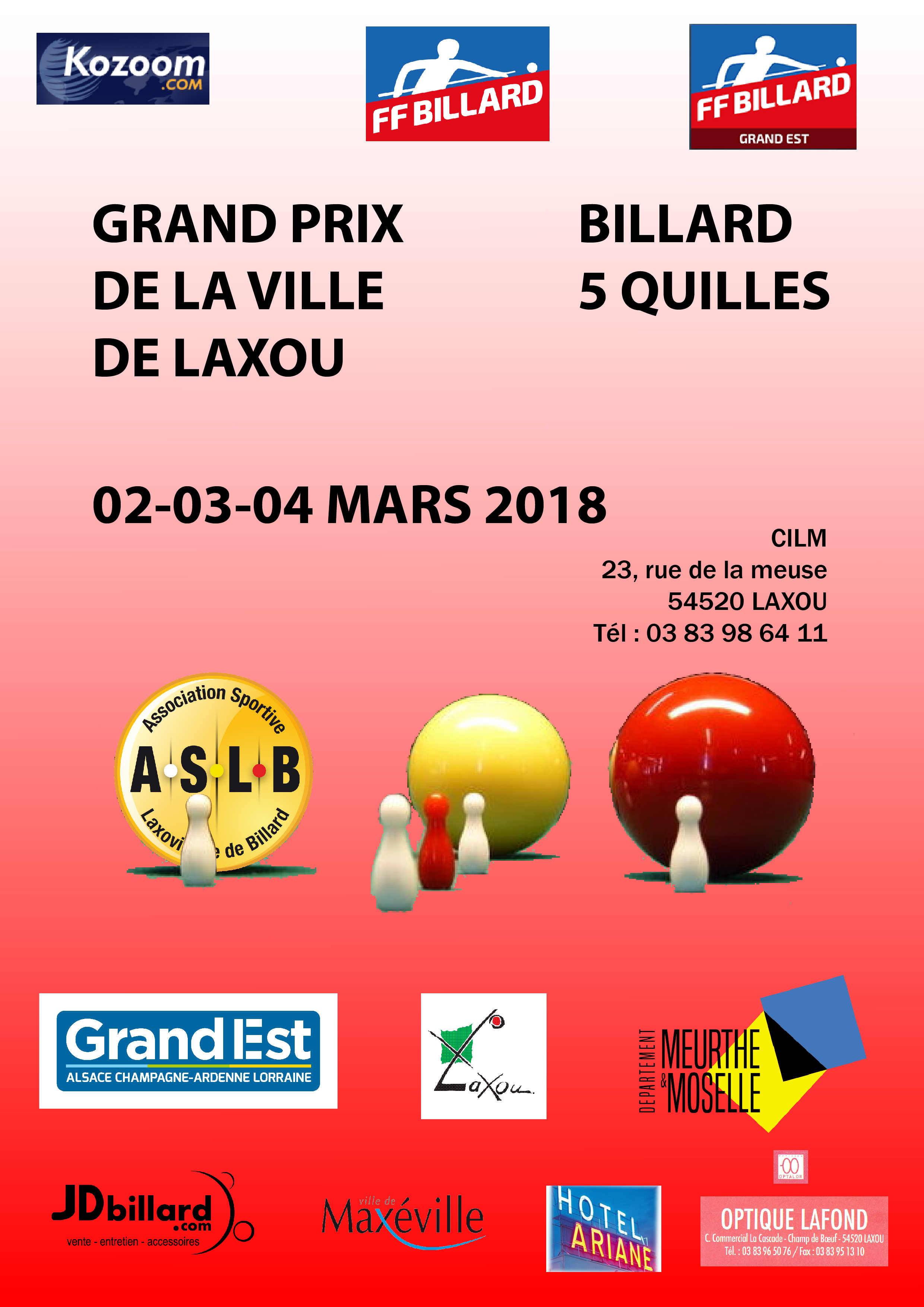 L’Association Sportive Laxovienne de Billard organise le tournoi national de 5-quilles du 2 au 4 mars 2018 à Laxou.