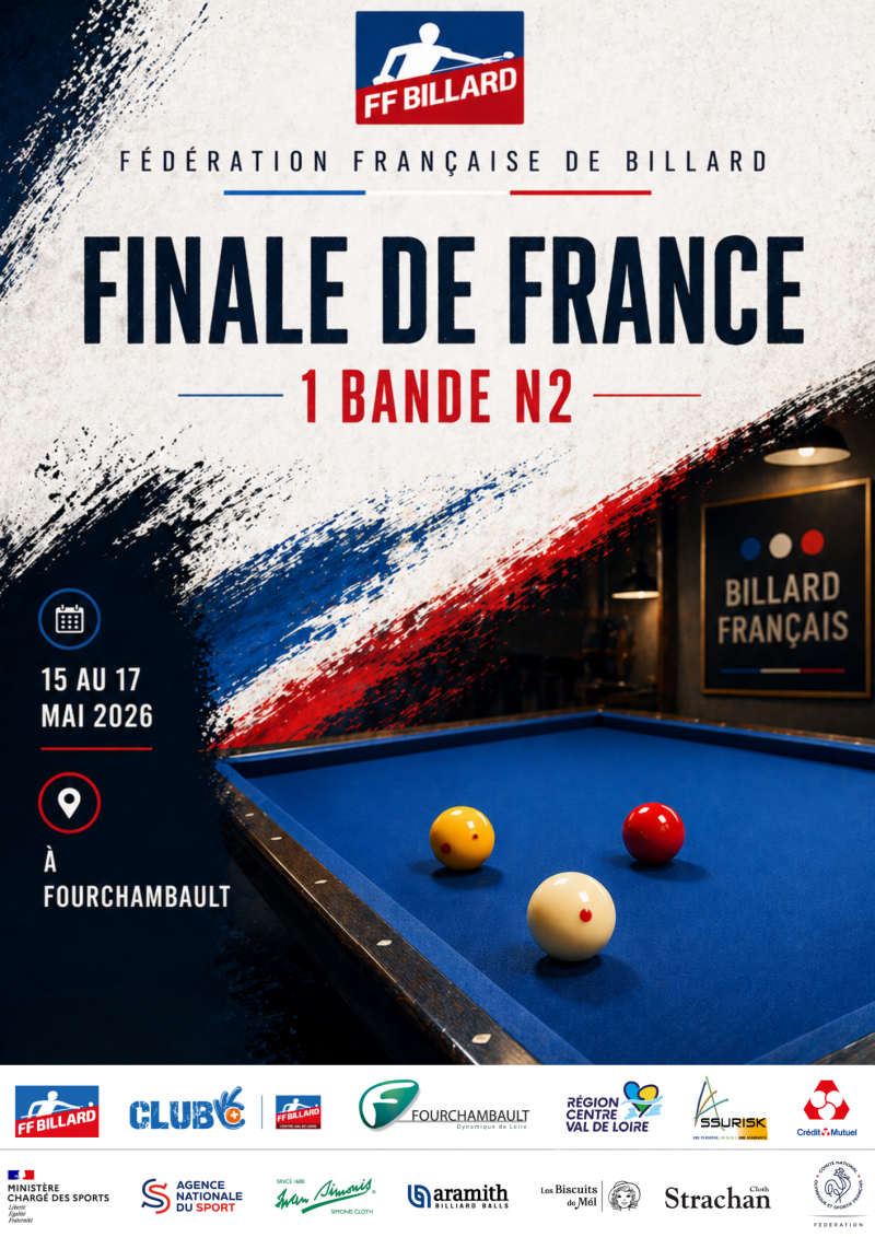 Le championnat de France National 2 à la bande se déroulera du 15 au 17 mai 2026 à Fourchambault.