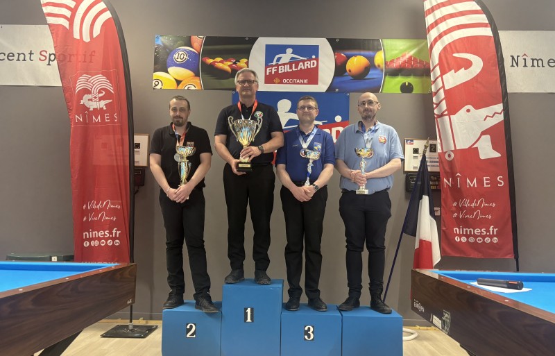 Olivier David est le champion de France 2025-2026 aux trois bandes, catégorie Nationale 3. Il a conquis le titre dans la salle du Billard club nîmois qui organisait cette compétition les samedi 11 et dimanche 12 avril.