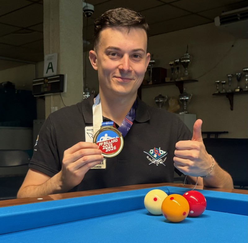 14h30 : la finale qui oppose Maxime et Christophe (qui s’étaient déjà rencontrés en poule 30 à 11 en 16 reprises pour Maxime) est de toute beauté et tient le public en haleine avec du suspense jusqu’à la fin, Christophe sort une série de 8 à un moment clef du match, et il faudra toute la force mentale et le talent du Blésois pour qu’il s’impose par 35 à 31 en 28.