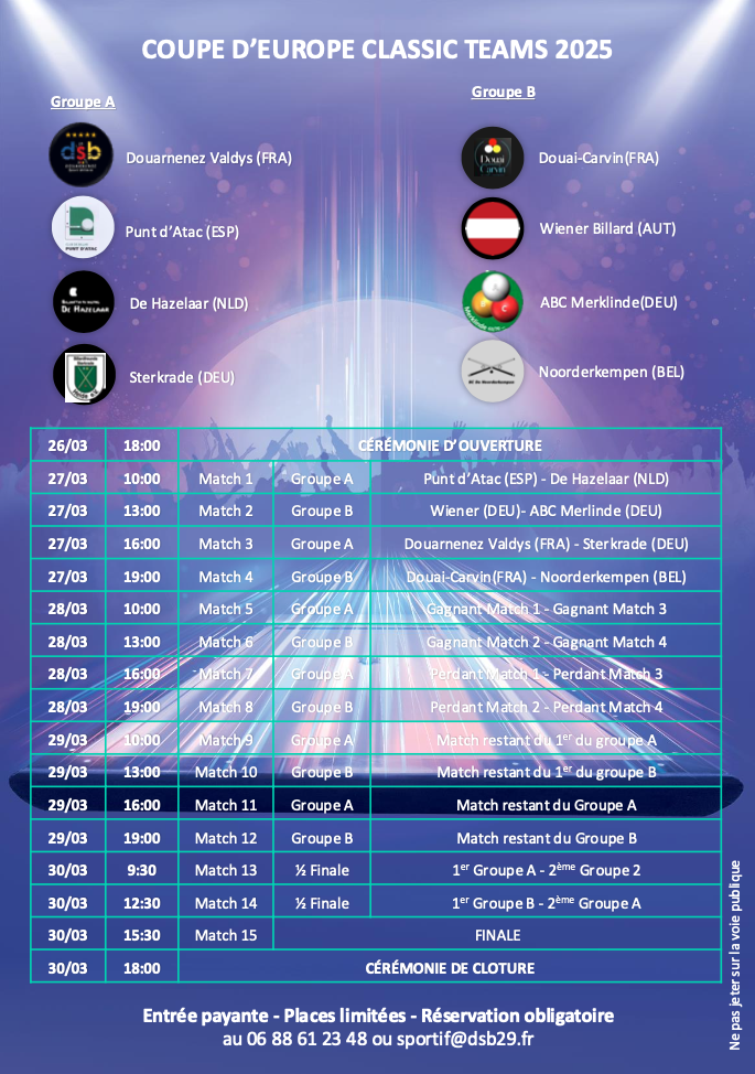 Dans le double, Laxou (Carreau et Socco) prendra le dessus sur les adversaires d’Ikast (Jaeger et Garavaglia) sur le score de 120 à 80 en permettant ainsi au club organisateur d’accéder à la finale dont il rêvait.