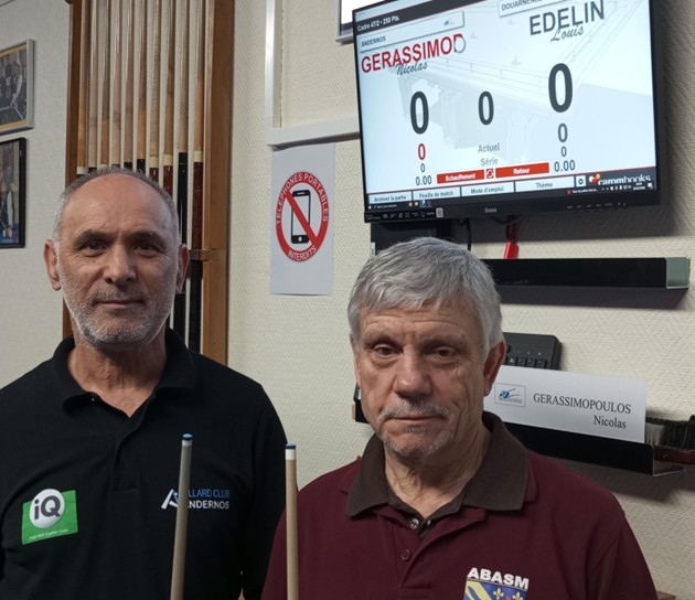 Doyen du championnat et tenant du titre la saison passée, Louis Edelin a annoncé la couleur dès le 1er tour de jeu dans le match qui l’opposait à Jullian Marchal avec une série de 250 après avoir raté le point de départ. Second de cette poule A avec 44.28 de moyenne générale et une particulière à 125, il rejoint Nicolas Gérassimopoulos invaincu avec 35.71 de moyenne.