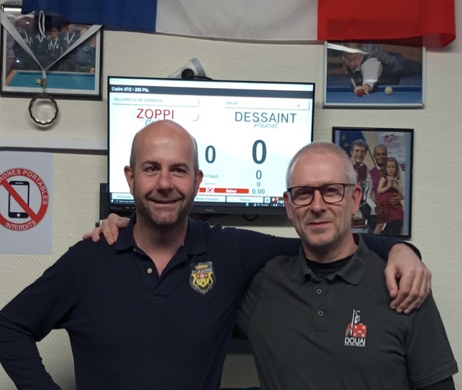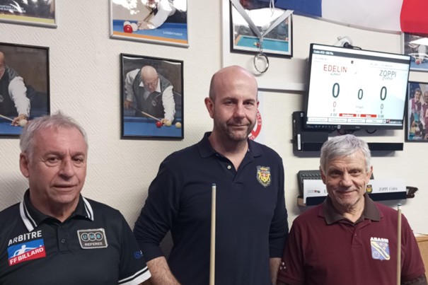 En ½ finale, Cédric ZOPPI a largement dominé son adversaire en 2 coups avec une série de 205, ne laissant pas à Louis Édelin l’occasion de s’exprimer. L’autre ½ finale, plus disputée avec Jean-François Florent en 7 reprises, conforte Willy Gérimont vers la finale.