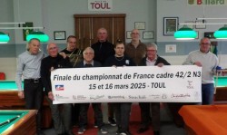 3è journée jeux de séries TOP LIGUE 1 Voir tous les détails Tournoi national n°2 artistique Masters Lieu : ACADEMIE DE BILLARD DE ST DIZIER - ST DIZIER Voir tous les détails Tournoi national n°2 snooker Masters Lieu : AMICAL BILLARD CLUB DINARD - DINARD Voir tous les détails Tournoi national n°3 jeu de la 14/1 Masters Lieu : B.C 1935 STRASBOURG-SCHILTIGHEIM - SCHILTIGHEIM Voir tous les détails Tournoi national n°3 jeu de la 8 Nationale 1 Lieu : B.C 1935 STRASBOURG-SCHILTIGHEIM - SCHILTIGHEIM Voir tous les détails | 14