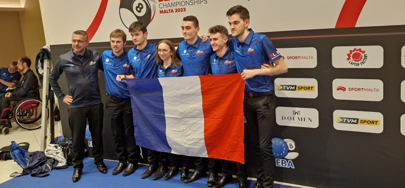 Leonardo Moreira, Nathan Gambino, Damien Joly et Killian Ballon remportent la finale 10-5 face à l’Afrique du Sud avec une magnifique dernière bille noire empochée par Killian.