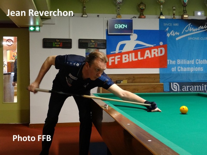 Kévin Perrotin accède à la 2e place avec 1,048 de MG et les victoires en poule sur Grégory Le Deventec 35/27 en 30 et Stany Buyle 35/25 en 30. Puis il écartait Bernard Baudoin en ¼ 40/26 en 35, puis Jean Reverchon 40/29 en 38.